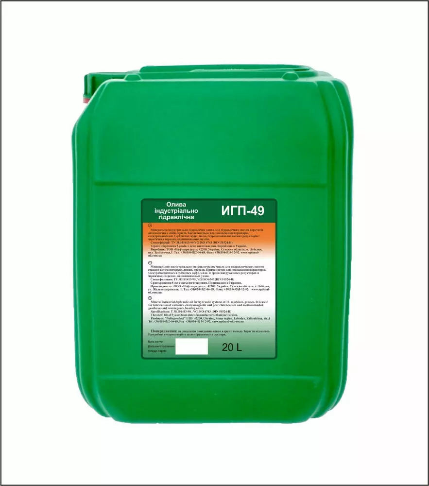 ИГП-49 - Мінеральна індустріально-гідравлічна олива для гідравлічних систем верстатів автоматичних ліній, пресів.